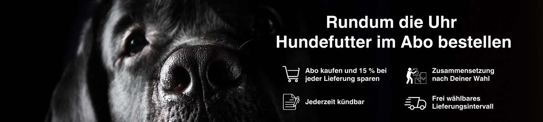 Bequem kannst Du mit unserer neuen online Hundefutter-Abo-Funktion das Trockenfutter bestellen und es regelmäßig zu Dir und Deinem Hund liefern lassen.